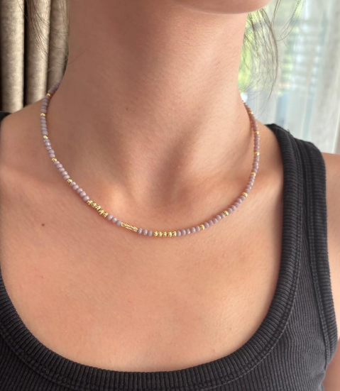 Mor Kristal Boncuk Kolye, modern ve trendy bir tasarıma sahiptir. Boncukların dikkatli bir şekilde sıralanması, kolyenin estetik görünümünü artırır. Farklı boyutlardaki boncukların kullanılması, dinamik bir hava katarken, aynı zamanda zarif bir denge sağlar. Bu kolye, ister günlük kullanımda ister özel davetlerde mükemmel bir tamamlayıcı olarak öne çıkar.